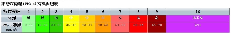 根據PM2.5的濃度高低,制定了指標等級,如果PM的濃度≧71(μg/m3)在指標中被分為第10級(紫色等級),就應避免減少戶外活動,出門戴口罩,室內要減少開窗,家中使用空氣清淨機等,有過敏體質的人更應該注意,以免過敏氣喘復發或惡化。