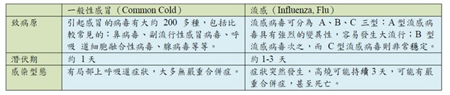 受到氣候變遷影響,今年冬季氣溫變化大,感冒人數也不斷增加,症狀又快又急,民眾不免會擔心是否得到流行性感冒?一般性感冒(CommonCold)與流行性感冒(Influenza, Flu)有所不同,食藥署為大家彙整出兩者的差異性:
