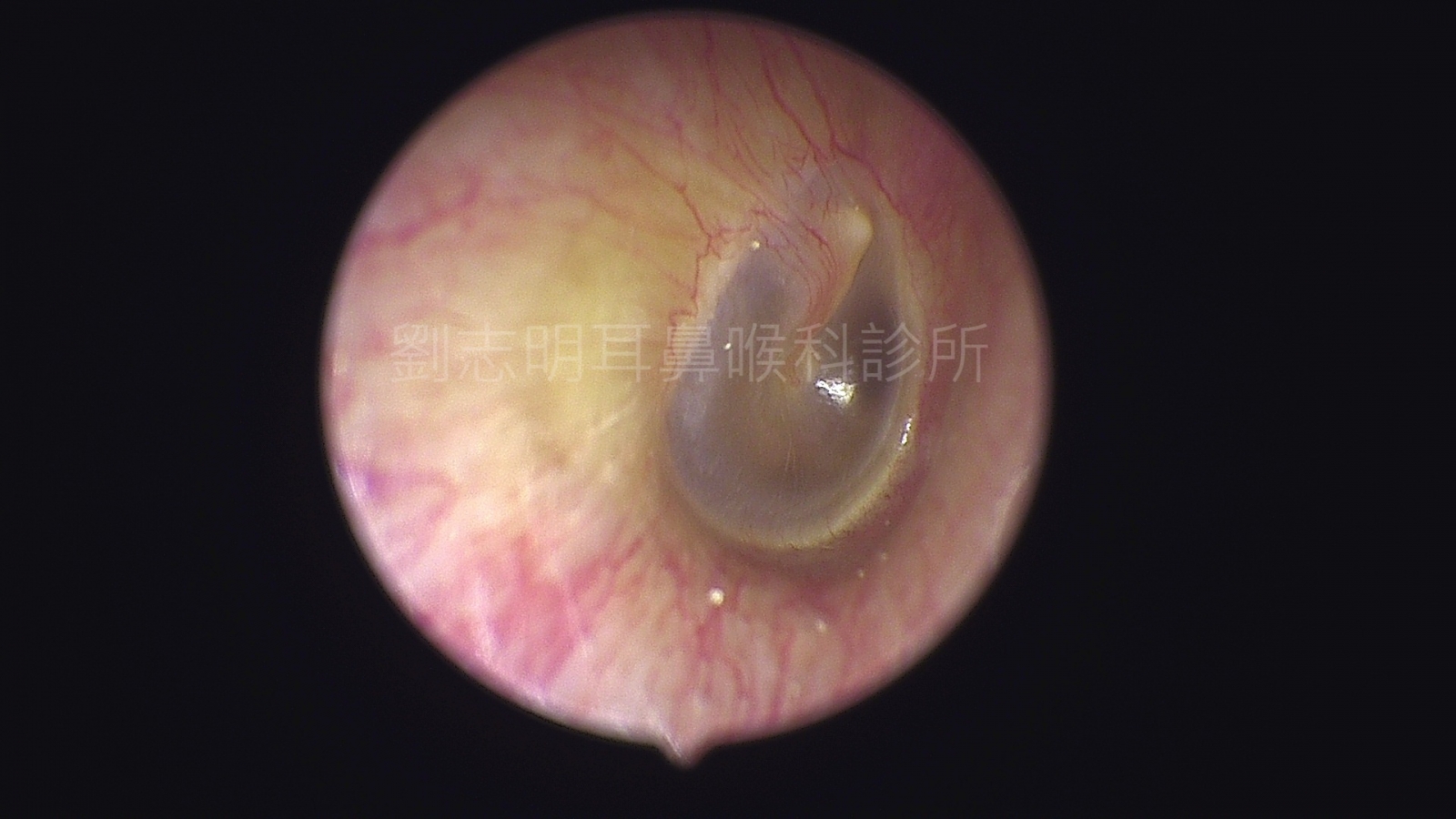 (圖一):這張是一個正常的,透光度很好,只是耳膜的外環有硬化的現象。