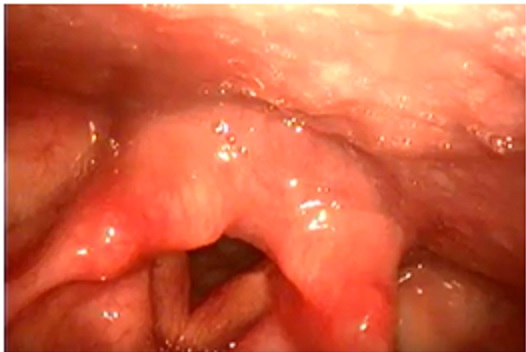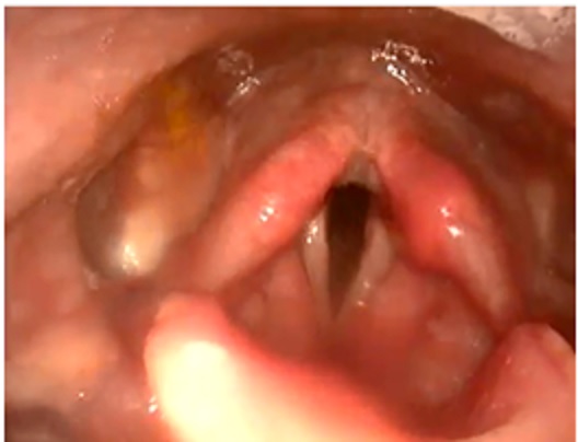 胃酸所引起厲害的喉頭腫脹 輕微的喉頭腫脹(左側>右側)