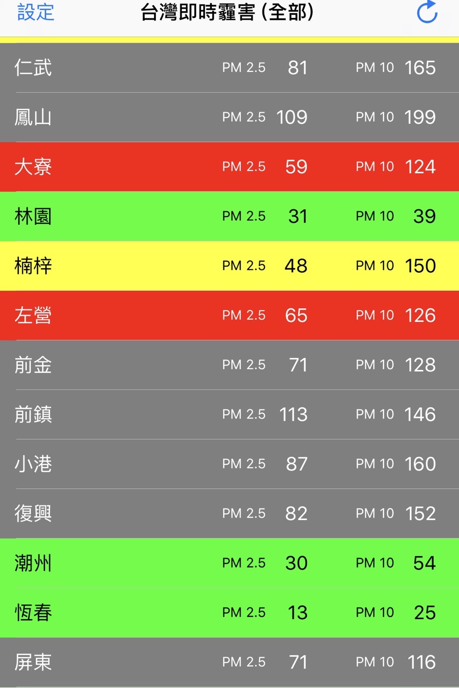 這兩張圖片是昨天晚上從APP節錄下來的,可以看見高雄市的空氣品質幾乎全部淪陷,屬於極危險的黑色區塊,相較於另外一張圖片台灣中北部地方的空氣品質仍然不錯,晚上因為沒有光線輔助,根本無法察覺空氣品質的惡化,這兩三年以來,每到冬天空氣污染的問題都很嚴重,建議大家下載霧霾指數提示的APP,隨時可以了解目前現在空氣品質的狀況,同時有過敏疾病及上呼吸道問題的人,在空污嚴重的時候建議減少出門或多戴口罩,家裡減少開窗及使用空氣清淨機,長期吸入這樣骯髒的空氣,容易引起過敏發作,也容易造成呼吸道方面的問題,只能防護多少算多少了。