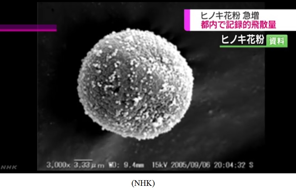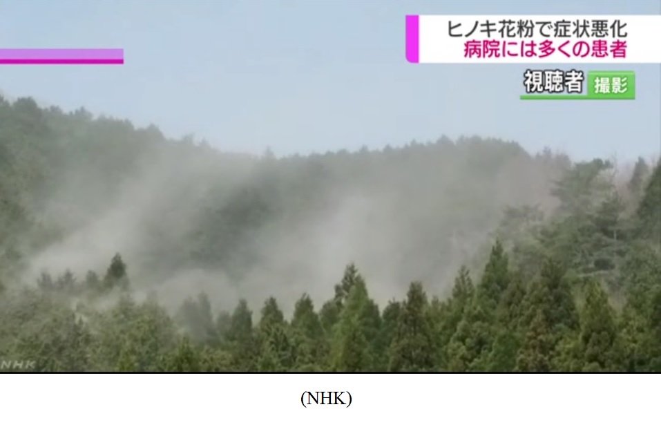 圖二是東京郊區的山上杉木林,花粉像灰塵一般飛揚起來的空拍圖(截取自NHK)。