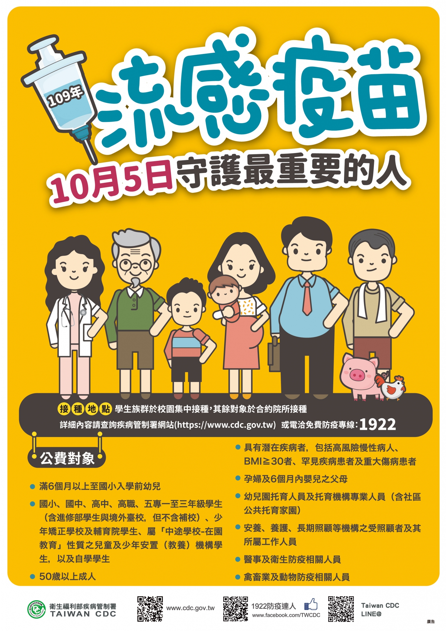 | 消息標題: | 109年公費流感疫苗 10月5日開打 |
